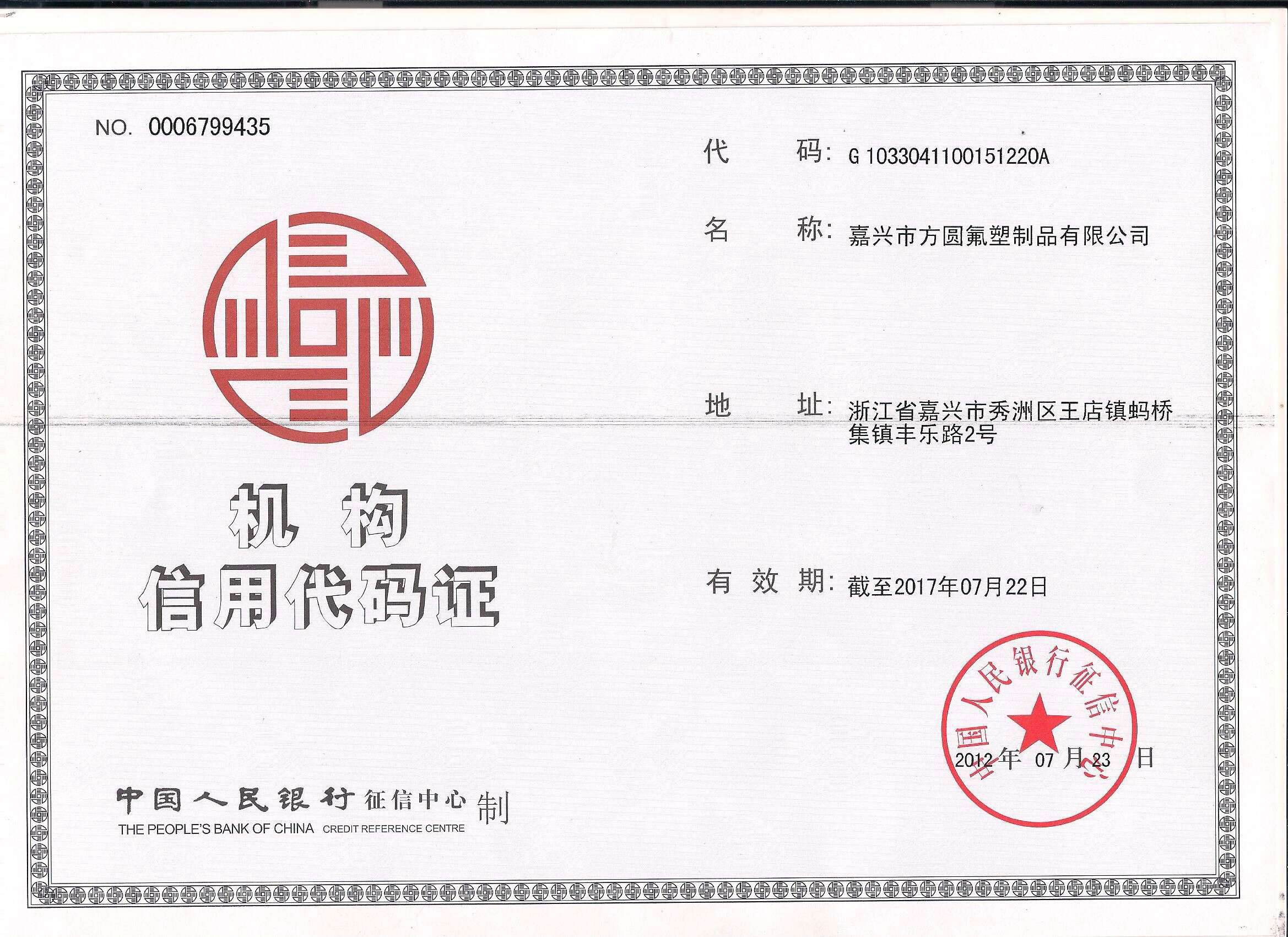 中華人民共和國(guó)組織機(jī)構(gòu)代碼證